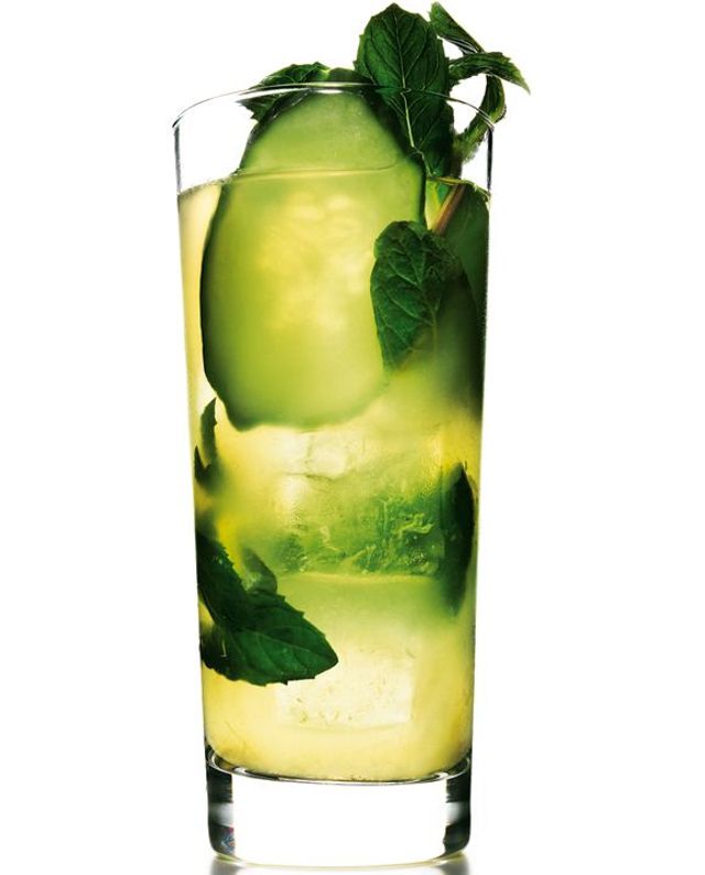 London Leaves: 1 Stängel Minze, 6 cl Gin, 2 cl Limettensaft, 3 cl naturtrüber Apfelsaft, 2 cl Zuckerwasser, 2 cl Soda ,1 Gurkenscheibe. Die Minze im Longdrinkglas mit einem Stößel andrücken, alle weiteren Zutaten sowie Eiswürfel dazugeben und umrühren. Die Gurkenscheibe über den Glasrand reiben und danach ins Glas geben.