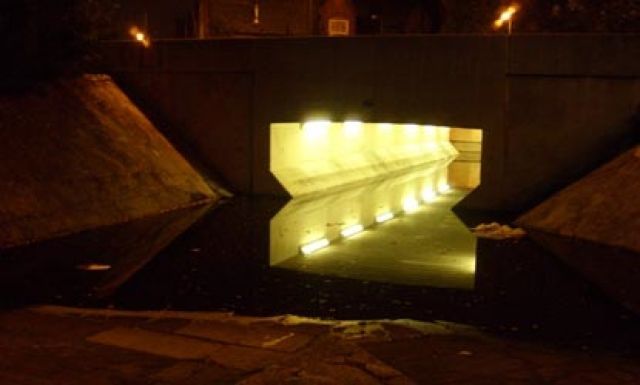 Der Fotograf Timur Çelikdag muss dafür in London Orte finden, die dieses bedrückende Gefühl von Düsterheit und Angst transportieren. "Wir haben etwa an einem sehr engen Treppenaufgang an der London Bridge fotografiert, der nachts ein Gefühl von Klaustrophobie vermittelt", erzählt Çelikdag. Auf einem anderen Bild rutscht die Hauptperson der Fotostrecke - gespielt von Jayelle, einem amerikanischen Model - einen Abhang hinunter. Ein ander Mal steht sie umgeben von einer dunklen, scheinbar undurchdringlichen Flüssigkeit, die Aufnahmen schwanken zwischen Surrealität und Bedrohung. "Aber diese Gefühle sollen ganz subtil rüberkommen, nicht extrem, wie bei einem Horrorfilmszenario." An der Unterführung, die man auf diesem Bild sieht, hat Stanley Kubrick den Film "A Clockwork Orange" gedreht. Das Wasser ist Regenwasser und keine Absicht, das Team musste an einem anderen Ausgang fotografieren.