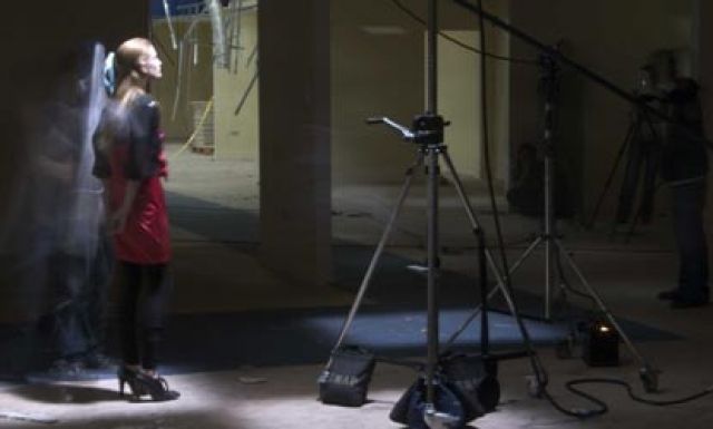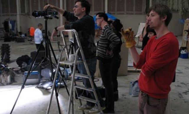 Der Mann auf der Leiter ist Timur Celikdag, der Assistent trägt Lederhandschuhe, weil Timur Çelikdag mit Filmlicht arbeitet, die Scheinwerfer werden sauheiß. Filmlicht hat eine ganz andere Charakteristik als normales Licht, zusätzlich benutzt Çelikdag Blitzlicht, die Kombination aus beidem erzeugt die gewünschte dramatische Atmosphäre der Bilder. "Die Scheinwerfer werfen sehr harte und sehr lange Schatten, es erinnert an Film noir."