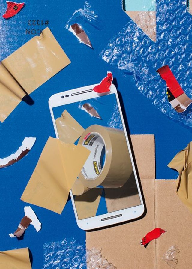Verpackungskünstler: Was man nicht sieht – die Rückseite dieses Motorola »Moto X Style« besteht aus Holz. Dabei ist das Gerät so flach, dass man es für Karton halten könnte.