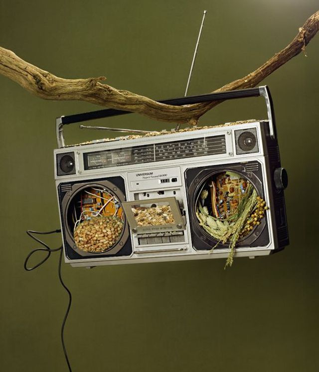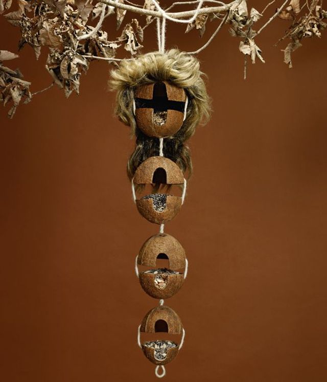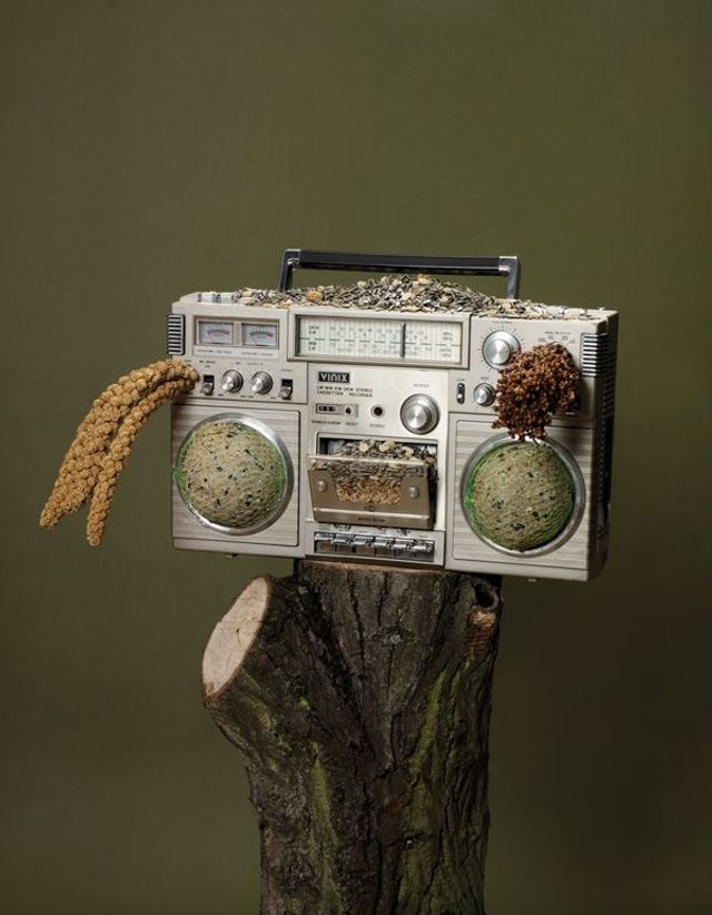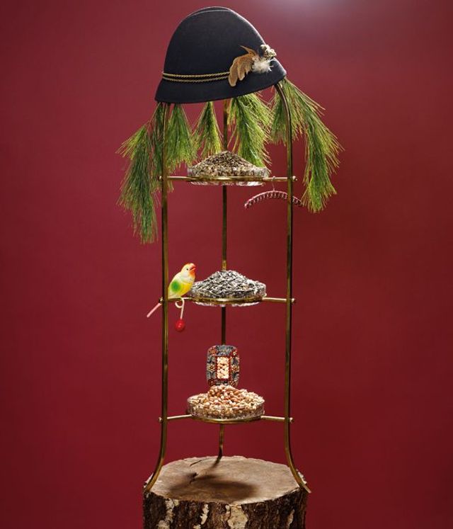 Natürlich, es hat sich noch kein Vogel beschwert. Aber was macht wohl mehr Spaß: Fettfutter aus industriell gefertigten, in hässliche grüne Netze gepackten Meisenknödeln zu fummeln – oder aus den Kerzen eines Kronleuchters zu picken? Körner aus den Boxen eines alten, charmanten Kofferradios zu fressen – oder vom Boden eines Futterplatzes, über den schon zwanzig andere Amseln gehüpft sind, und es ist ja kein Geheimnis, dass Amseln nicht stubenrein sind. Warum soll ein Vogel, nur weil er ein Vogel ist, keine Ansprüche an die Tischkultur stellen dürfen?