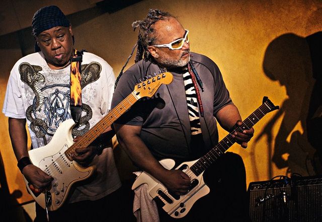 Von Clinton ist noch nichts zu sehen, aber einer seiner Gitarristen taucht auf. Oft sind Musiker wenig erfreut, wenn sie von Fans angequatscht werden, hier ist das anders. Als ich den Gitarristen anspreche, stellt sich heraus, dass es sich um Garry Shider Jr. handelt, den Sohn des legendären Garry Shider, in den Siebzigerjahren eine der prägenden Figuren des P-Funk-Kosmos. »Ich war schon mit George auf Tour, bevor ich laufen konnte«, erzählt er. Als sein Vater vor vier Jahren an Krebs starb, nahm er dessen Platz bei den P-Funk All Stars ein: »Wir sind eine große Familie.«