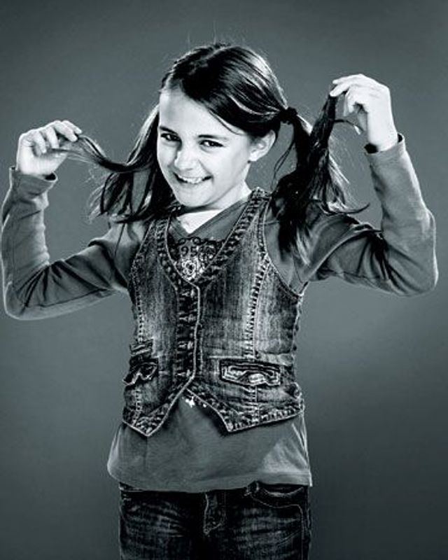 Name: Ella June Thomas Geboren: 7. Juni 2001 in München Beruf: keiner Ausbildung: 3. Klasse Grundschule Hohenschäftlarn, Bayern Status: »You’ll be a woman soon« Wer Ella kennt, macht sich um die weibliche Emanzipation keine Sorgen mehr: Sie ist acht und hatte schon sechs Freunde, in der Schule ist sie von Jungs umringt, einer trägt ihr manchmal den Schulranzen. Das alles wusste ihr Vater – einer unserer Lieblingsfotografen –, als er sie fragte, ob sie Lust habe, für unser Frauenheft zu posieren. »Warum nicht?«, sagte sie und spielte weiter mit ihrem Hund Paula.