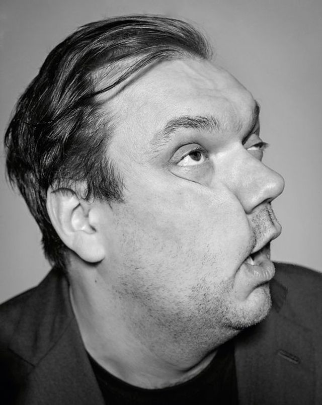 Kaum glaubt man verstanden zu haben, wie Charly Hübner tickt, überrascht er einen wieder mit einer ganz anderen Seite. Klar, so ist die Schauspielerei. Aber bei Hübner hat man immer den Eindruck, den echten Menschen vor sich zu haben – vor allem wenn das 1,92 Meter große »Trumm« (so nennt er sich selbst) seinen weichen, zärtlichen Blick anwirft. Hübner, Variante eins: der boxende Bad Boy, belegt durch Rollen als Kommissar Bukow im Polizeiruf aus Rostock und als mittelalterlicher Freiherr in Die Gräfin. Oder, Variante zwei: der humorvolle Antiheld wie in seinem neuen Film Fühlen Sie sich manchmal ausgebrannt und leer? Hier spielt er den Ehemann der Figur, die von Lina Beckmann dargestellt wird, mit der er auch jenseits von Kamera und Bühne zusammen ist. Schon wieder so eine Überlagerung von Wirklichkeit und Fiktion. Vielleicht ist er aber, Variante drei, ein Punk? Als Teenager trug Hübner jedenfalls eine zerfetzte Lederjacke, obwohl er (da ist er wieder Weichei) davon ständig Schulterschmerzen bekam. Jetzt hat Hübner die Dokumentation Wildes Herz über Jan Gorkow gedreht, den Rostocker Antifa-Aktivisten und Frontmann der Band Feine Sahne Fischfilet. Als Regisseur. Zumindest das trifft zu: Einmal Punk, immer Punk.