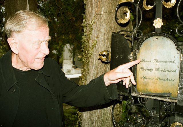 Beide waren füreinander existentiell. Sie sind oft zusammen verreist, sie waren in Rijeka, später in Portugal und Spanien, denn wenn er schrieb, hat er sich immer in fremde Sprachgebiete zurückgezogen. Hede war eine wunderbare Person der Wiener Gesellschaft, ich muss ihr völlig unheimlich gewesen sein und wahrscheinlich hat sie mich nur ertragen, weil sie wusste, dass Bernhard einiges von mir hielt. Sie haben nicht weit von hier gewohnt, unten in der Obkircherstraße. Bernhard hat dort schon als junger Mensch in einer Stube in ihrer Wohnung gewohnt. Später bin ich noch oft mit ihm hier in den Weinbergen der Umgebung rumgestrolcht. Während meiner 13 Jahre als Burgtheaterdirektor habe ich auf der drüberen Seite, wie man hier sagt, gewohnt, in Gersthof. Es war im Grunde konsequent entsprechend seiner ländlichen Gesinnung, in der Nähe seiner Wohnung beerdigt zu sein. Nun sind sie beide in Grinzing gelandet, der Thomas und die Hede, hier am Hügel.