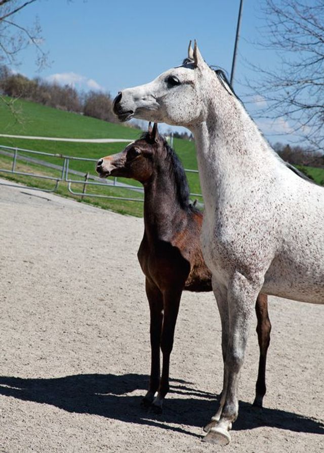 Nastrapsy ist das Topmodel unter den Zuchtstuten auf dem Allgäuer Gestüt Osterhof: eine Vollblut-Araberstute mit schwebendem Trab, wirbelndem Galopp und glänzend weißem Fell mit Sprenkeln, Fliegenschimmel nennt man das. Ihre Augen leuchten klar und schwarz, ihre Nüstern blähen sich, und wenn sie ihre Ohren spitzt, sieht ihr Kopf aus wie ein Scherenschnitt. Das Besondere aber, das, was sie von allen anderen der schönen Zuchtstuten auf dem Gestüt unterscheidet, sind ihre Nachkommen. Fünf Fohlen hat sie bislang bekommen, vier davon sind Champions, überhäuft mit Preisen auf Zuchtschauen. Ihr letztes Fohlen, erst ein paar Tage alt, hat ihr Züchter per Handyfoto an die Scheichs im Oman und in den arabischen Emiraten Dubai, Abu Dhabi und Ajman geschickt. Ein paar Minuten später war es verkauft: zum Preis eines Ferraris, an den Kronprinzen von Ajman.