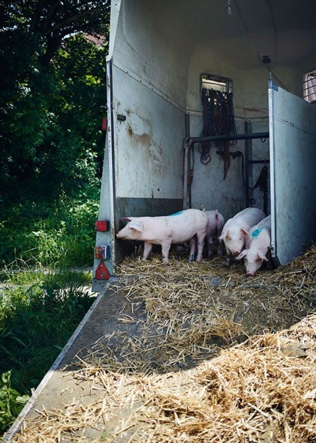 Die Pfleger haben für unser Experiment drei der etwa drei Monate alten Mastschweine ausgesucht und sie von der Masse getrennt. Eng aneinandergedrängt kauern die Schweinchen am Ende eines Ganges. Alt werden Mastschweine in solchen Anlagen nicht, maximal sieben Monate, dann haben sie ihre 100 bis 110 Kilo erreicht. Diese drei wären also fast an der Hälfte ihres Lebens angelangt, würden wir sie nicht holen.