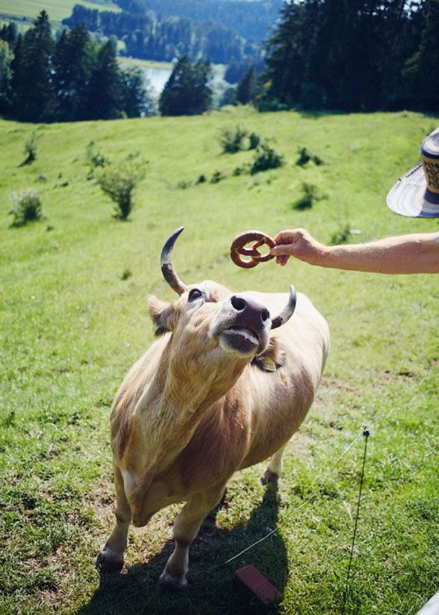 Der Hof von Volker Zahn, 74, eremitierter Professor für Frauenheilkunde, schmiegt sich im oberbayerischen Pfaffenwinkel bei Weilheim nahe der Lechschleife in eine Landschaft, die als Vorlage für ein kitschiges Ölbild dienen könnte: sanft hügelig, waldig und grün, mit Weiden, Feldern und bunt getupften Blumenwiesen. Der fast 300 Jahre alte Hof liegt am Rande des Weilers Kreut bei Peiting, der aus einer Kapelle und einer Handvoll alter Bauernhöfe besteht, vor denen Katzen in der Sonne lungern und Hunde ihr Terrain abkläffen. Bauern kennen diese Gegend, weil hier die bayerische Braunvieh/Fleckvieh-Grenze verläuft – im Allgäu und in Schwaben wird Braunvieh gehalten, in Oberbayern Fleckvieh.