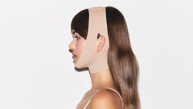 Denn Kim Kardashians Shapewear-Firma stellte diese Woche einen collagengetränkten »Sculpt Face Wrap« vor. Quasi ein Stützstrumpf fürs Gesicht, der Kinn, Nacken und die gesamte Wangenpartie straffen soll – ganz einfach über Nacht. Anlegen, festschnallen, hinlegen, fertig. Schönheitsschlaf 3.0.