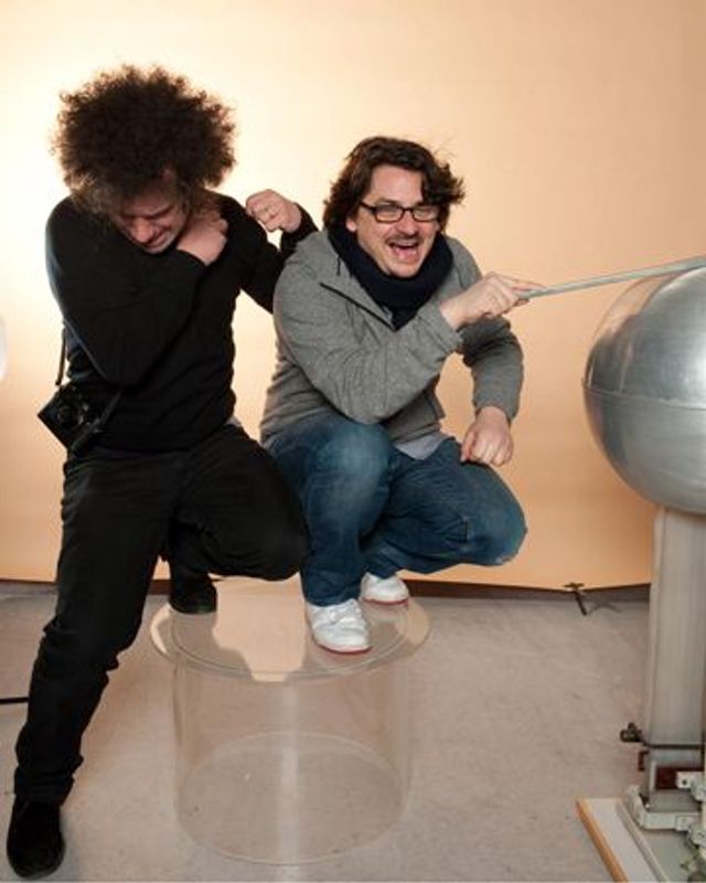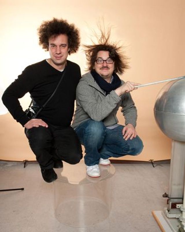 Der Van-de-Graaff-Generator: www.de.wikipedia.org/wiki/Van-de-Graaff-Generator