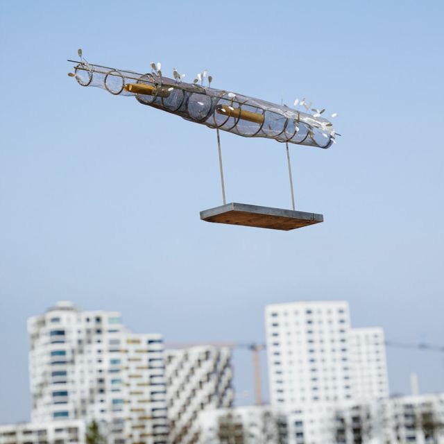 3. Modell von Rem Koolhaas & David Gianotten: Das etwa 20 Zentimeter große Architekturmodell zeigt das »Taipei Performing Arts Center«, einen Theaterkomplex in der taiwanesischen Hauptstadt Taipeh, der kurz vor der Fertigstellung steht. Der Bau gruppiert sich leicht erhöht um geometrische Formen wie Quader und Kugeln und wird durch einen Fußgängerdurchgang unterbrochen. 3140 Zuschauer werden dort insgesamt Platz finden. Diverse Schnittstellen verbinden Theaterleute, Publikum und Passanten und sollen neue Spielräume für Theaterexperimente eröffnen. Das Modell besteht aus Kunstharz, Holz, Aluminium, Acryl und Gips. Dieses signierte Unikat zeigt alles, wofür OMA ist: eine monumentale, manchmal provokante Collagen-Ästhetik und das Vermögen, komplexe soziale und kulturelle Räume der Großstadt neu zu denken.