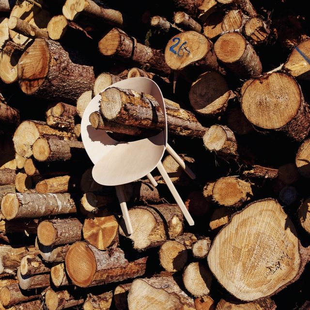 1. Stuhl von Stefan Diez: Vor der Freigabe zur Serienproduktion wird bei Möbeln oft eine Nullserie angefertigt, eine erster Probelauf. Sie ist praktisch identisch mit dem Serienprodukt, kommt aber nicht in den Verkauf und ist ein beliebtes Sammlerstück. Ein solches signiertes Nullserien-Exemplar aus hellem Holz stellt Stefan Diez zur Verfügung. Es stammt aus der Stuhl-Kollektion »Mudra« für den deutschen Hersteller Brunner, die Diez 2021 entworfen hat. Ihr sei eine lange Entwicklungsphase vorausgegangen, sagt Diez, in der man sich eingehend mit dem Biegen von Schichtholz in neuartiger 3-D-Technik beschäftigt habe. Das charakteristische Merkmal von »Mudra« ist seine geschwungene, elastische Rückenlehne aus einem Stück. Der Stuhl ist stapelbar und kann nachträglich gepolstert werden.