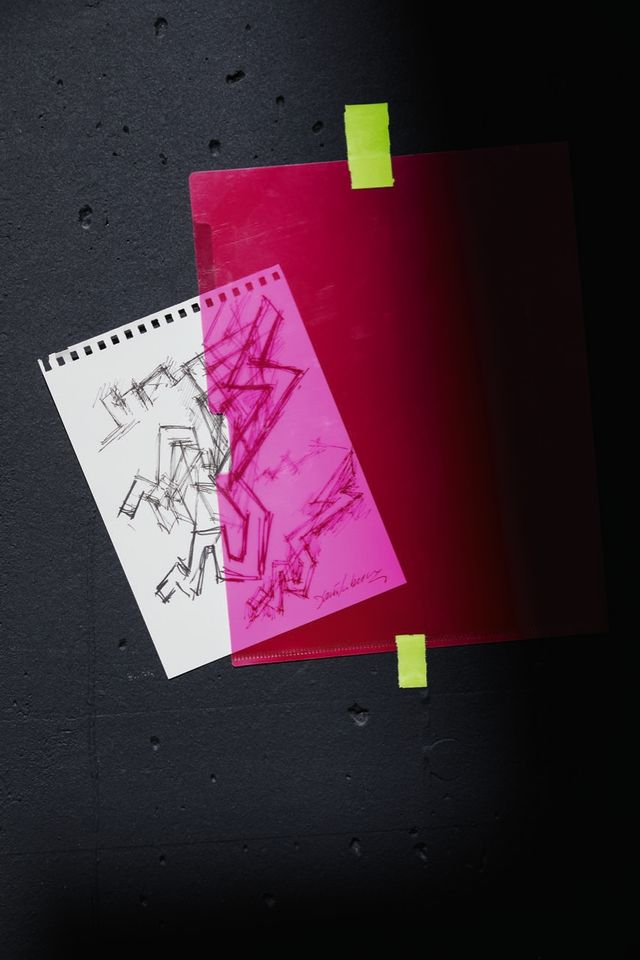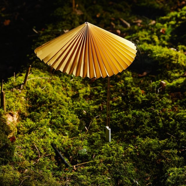 2. Lampe von Inga Sempé: Das von Sempé gestaltete 1:1-Papiermodell zeigt eine Vorstufe zu ihrer Tischlampenserie »Matin« von 2019 für den dänischen Hersteller Hay. Der plissierte Lampenschirm erinnert an die bunten Papierschirmchen, die manchmal Eisbecher und Cocktails schmücken, der Fuß ist aus gebogenem Kupferdraht. Die »Matin«-Serie wurde 2021 um Wandleuchten in diversen Farben und Größen erweitert. Das Original-Modell ist nicht leuchtfähig, aber mindestens so augenfällig in jedem Regal wie ein Bildband des Vaters von Inga Sempé, des Cartoonisten Sempé.