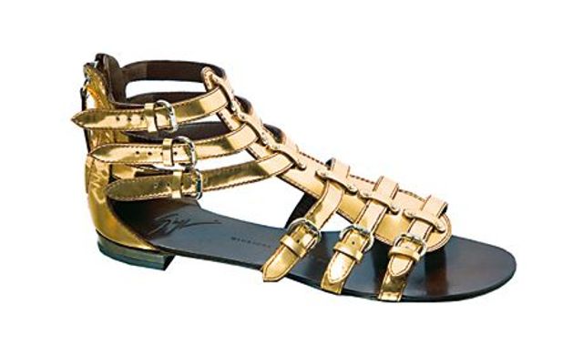 Wären die griechischen Göttinnen noch interessiert an irdischen Dingen, würden sie diesen Sommer die Schuhläden leer kaufen: Antik anmutende Riemensandalen in allen Farben und Formen stehen in den Regalen – mal golden schimmernd, mal blau oder violett; geschnürt mit schlichten braunen Lederriemen, zarten Bändern oder auch groben Kordeln. Beim Sommerschuhkauf können Frauen nun also wählen, welche Göttin sie am liebsten sein möchten: die mächtige Hera, die kluge Athene oder doch lieber die zarte Aphrodite? Wer gern heute als Hera und morgen als Aphrodite auftreten will, muss dieses Jahr einfach mehr Geld ausgeben und zwei bis drei Paar Sandalen kaufen.
